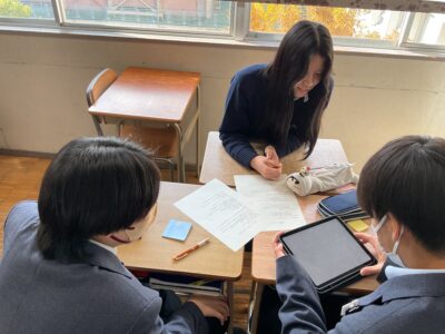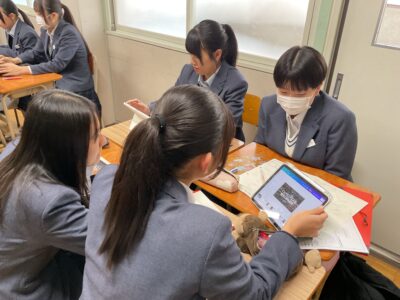 今回は、地歴公民科の先生方が厳選した10のテーマをもとに、北九州市立大学の教授が関連データを選定。生徒たちは班ごとにスライドを作成し、次回の発表に向けて準備を進めました。
